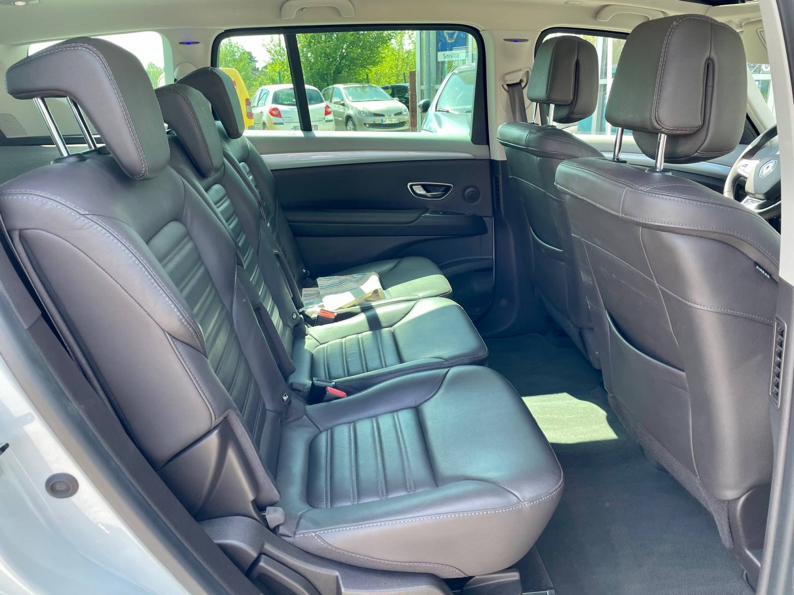 Equipements : Configuration 7 sièges Appuie-tête arrière virgule Appuie-tête avant Climatisation automatique bi-zone Hayon motorisé avec ouverture mains libre Lunette arrière chauffante Lève-vitres arrière anti-pincement Lève-vitres avant électriques et impulsionnels Pare-Brise Athermique et anti-U Prise 12V à chaque rang Aide au parking 360° ( avant, arrière et latérale) Rétroviseurs ext dégivrants, réglables et rabattables électriquement avec position marche arrière Rétroviseur intérieur électrochrome Sièges avant chauffants Sièges avant à réglages électrique 6 voies Carte Renault mains-libre Pare-Brise Panoramique Lumière Vitres arrière latérales et lunette arrière surteintées Commutation automatique des feux de route/croisement Indicateur de changement de vitesse Alerte de survitesse avec reconnaissance des panneaux de signalisation Frein de parking assisté Easy Park Assist (incl. caméra de recul et aide au parking avant/arrière/latérale) Renault MULTI-SENSE® (choix des modes de conduite) Affichage tête haute Régulateur de vitesse adaptatif et limiteur Airbags latéraux avant et rideaux Système Anti-Blocage des roues (ABS) Freinage actif d'urgence Aide au Freinage d'Urgence Airbags frontaux Déconnexion airbag passager Alerte oubli de ceinture de sécurité Avertisseur d'angles morts Alerte de franchissement de lignes Système de surveillance de la pression des pneus Alerte de distance de sécurité Anti-patinage avancé Système de fixations ISOFIX aux places latérales arrière Sans filet de retenue bagages Roue de secours galette Energy Smart Management Filtre à particules Sellerie cuir Sellerie Cuir Riviera Brun Foncé Ambiance lumineuse Feux de jour LED Décor de Console "Dot Effect" Jantes alliage 19" Quartz Diamanté Gris Erbé Surtapis avant et arrière Volant cuir Nappa R-LINK 2 : Navigation connectée avec cartographie Europe Bose Surround System Pré-équipement Services Connectés
